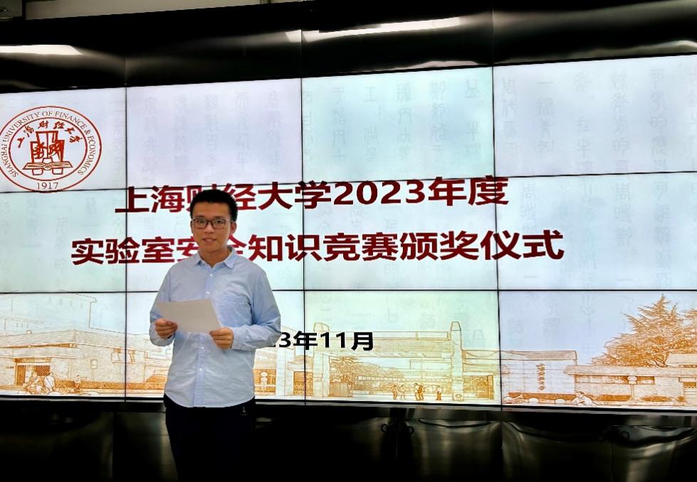来自交叉科学研究院的汪潇同学作为获奖代表发言,他表示:作为本科阶段学习材料专业的学生,又曾是上海市首届大学生安全知识竞赛的参赛者,我非常了解实验室安全对于学生、学校、社会的重要性。也感谢上海财经大学实验中心精心组织了这次比赛和活动,让同学们积累了安全知识,养成了安全意识,让大家可以在舒适、健康、安全的环境下,自由地学习与成长。