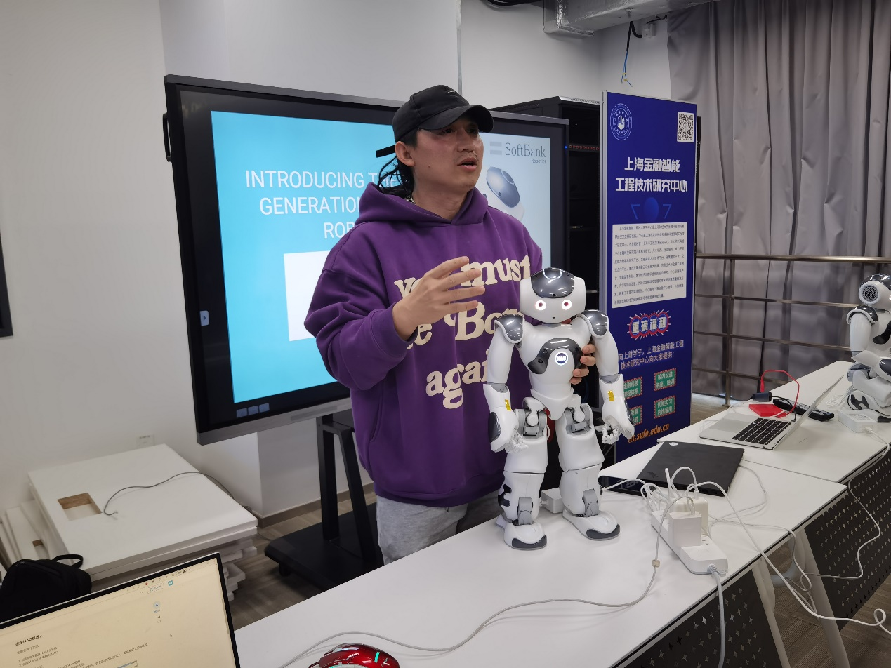 2023年3月14日下午,N.O.P.E机器人协会本学期社团内部第一次培训在科研实验楼612实验室顺利开展。本次活动由实验中心和信息管理与工程学院共同主办、上海金融智能工程技术研究中心协办,信息管理与工程学院刘桦老师主持指导,并邀请联匠信息科技销售总监王杰老师,NAO机器人技术总监付左鹏老师和技术支持汪智明老师为社团技术部的同学们带来讲解。技术部十余名成员踊跃参与,现场活动氛围热烈。
