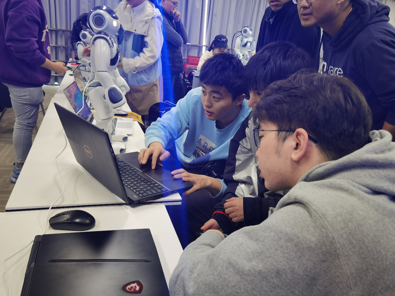 介绍完机器人的硬件后,老师细致地讲解了机器人的启动与配置的注意事项,并逐步演示如何在电脑端与NAO实现互联。随后同学们分组动手实践,在老师的悉心指导下,同学们完成了电脑与机器人的连接,尝试进行基本的交互动作。