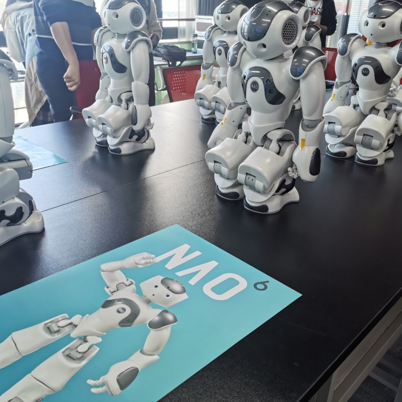 本次活动使用的是本学期新加入社团的NAO机器人,NAO是基于NAOqi操作系统、支持C++、Python和Java等编程语言的人形机器人,通过软件Choregraohe监控和控制机器人的行为。